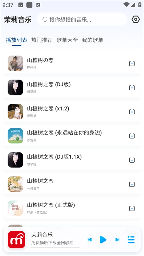 茉莉音乐,是一款简洁易用的音乐播放器软件,由用户喜凤自主创作。这款软件旨在为广大用户带来极致的音乐聆听体验。在茉莉音乐app里,囊括了多个音乐平台的歌曲,像酷狗、酷我、QQ音乐、汽水音乐以及网易云等。而且软件具备分类、智能推荐和排行榜功能,能让用户迅速找到心仪的歌曲。最为关键的是,使用该软件听歌无需充值VIP,还可以下载到设备上,即便没有网络也能播放。