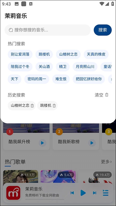 5、支持搜索,能根据歌名或者歌手为您搜索歌曲。