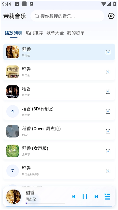 3、在此处我们搜索周董的《稻香》,能看到《稻香》有多个版本。
