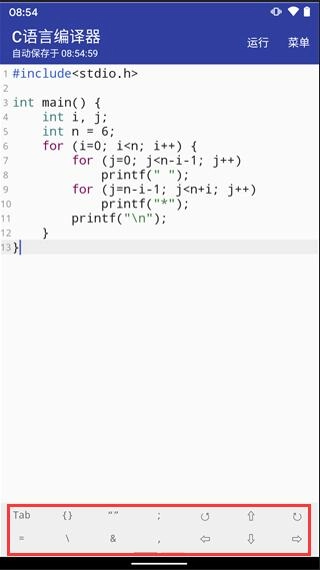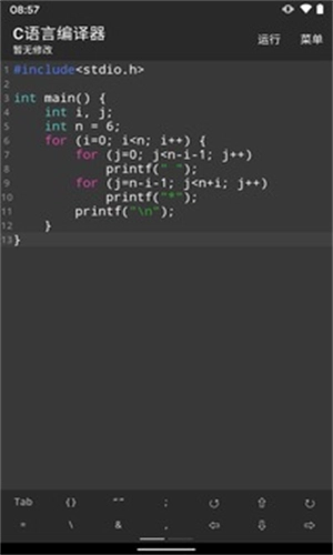 1. 开启C语言编译器App,便能直接在手机上编写代码。代码编写完成后,点击运行,即可实现代码的编译组建与运行。