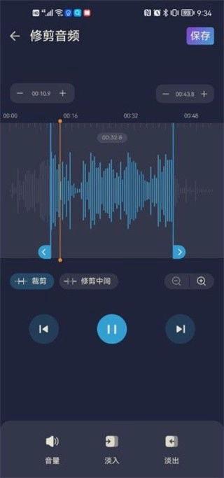 2、若同时想要使用说明功能,只需选择对应的按键。比如,若小编要进行裁剪操作,点击相应按键后,需先选择音频。要注意的是,在剪辑之前需打开权限哦!