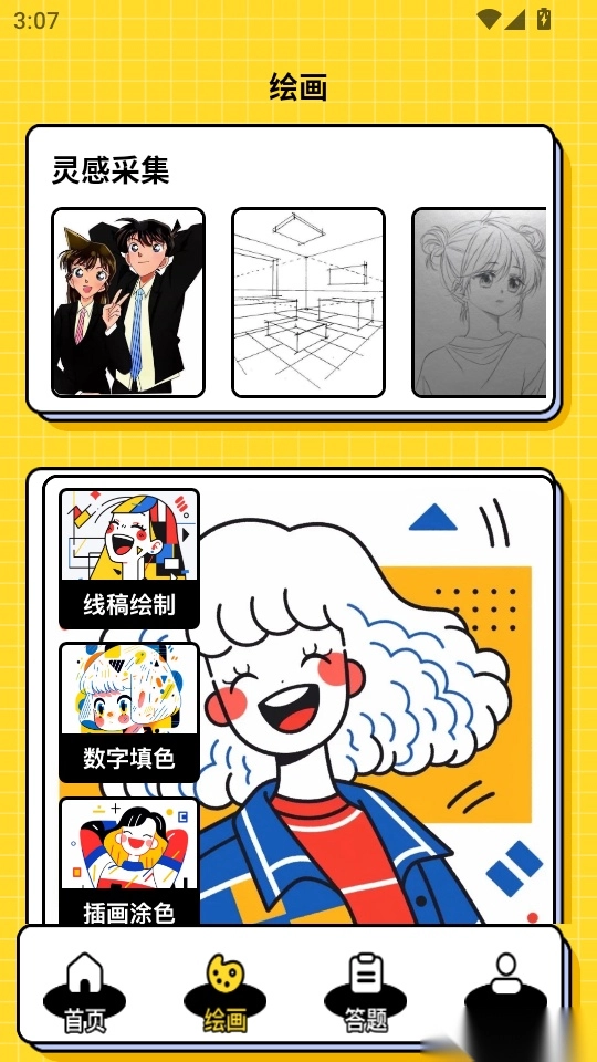 5. 当用户进入画图界面,便可挑选心仪的色彩为线稿填色。