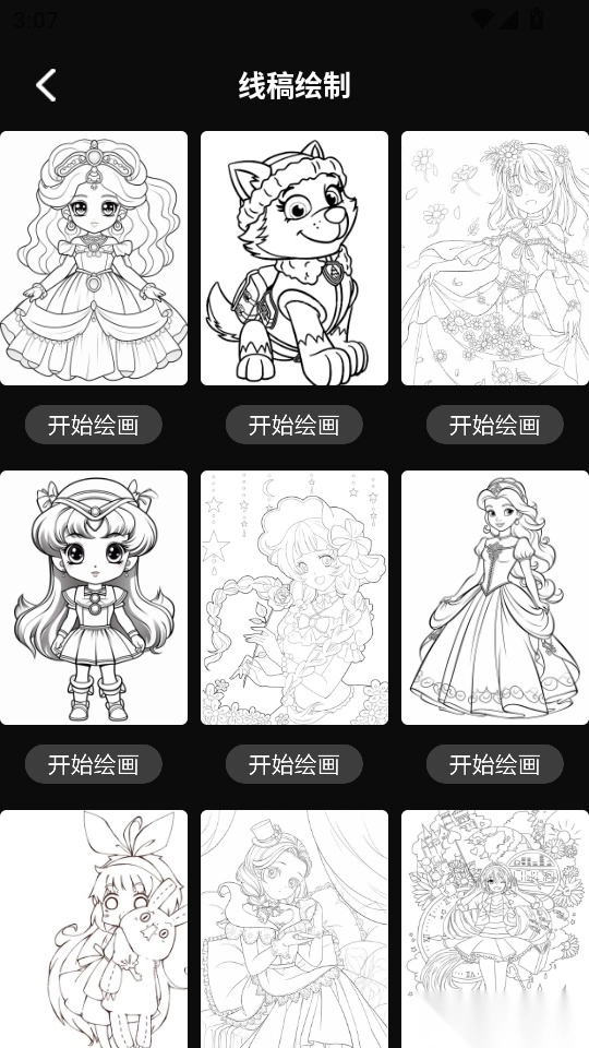4. 接着选择心仪的线稿图画,点击“开启绘画”,便可进入下一步。