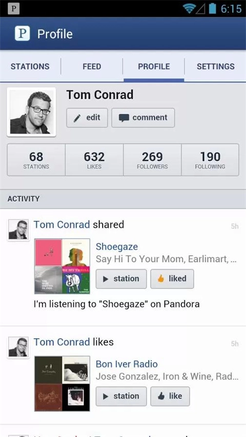 Pandora为你打造个性化的聆听感受,且会依据你的喜好持续更新。