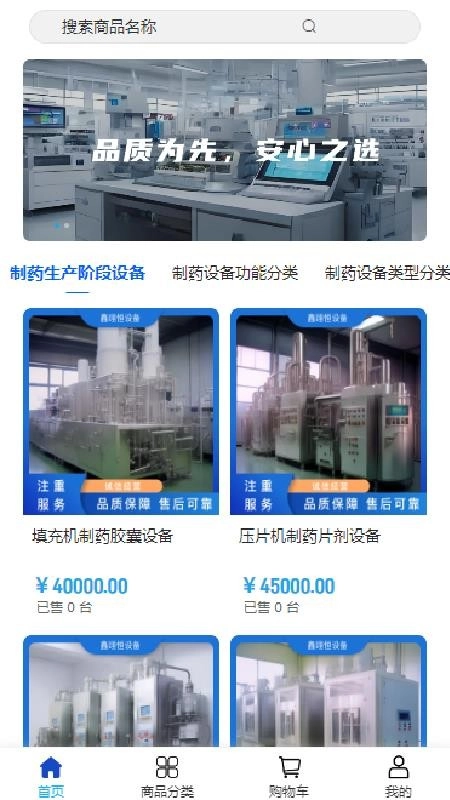 这是一个极为简洁便捷的购物平台,它对各类制药设备商品进行精细化、清晰的分类展示。用户在此平台上,能极速查找并选购商品,迅速找到心仪之物后下单购买,使得各类商品的购买变得更为快捷便利。不仅如此,平台还有诸多满减优惠活动,能让用户买到更实惠划算的商品,同时保障商品品质,让消费者购物更安心。