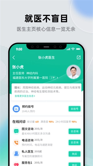 2、线下各专科的知名医生,提供电话咨询、文图咨询等服务,患者无需前往医院,就能便捷地获得接诊服务。