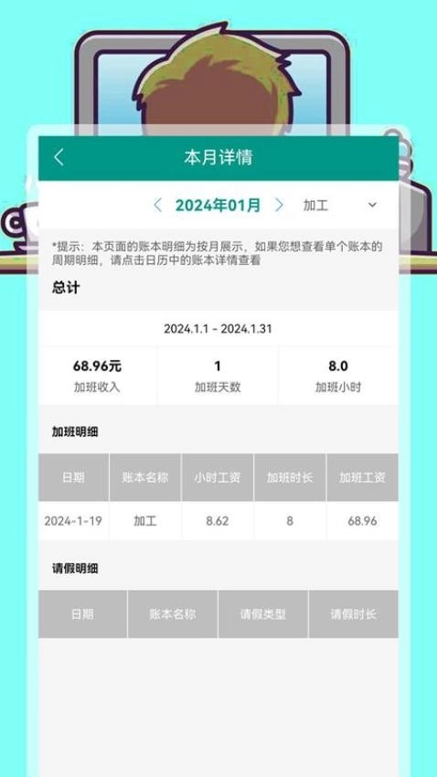 4. 统计与报表:该软件具备多样化的统计及报表功能,使用户能够直观知晓自身的加班状况以及费用统计结果。