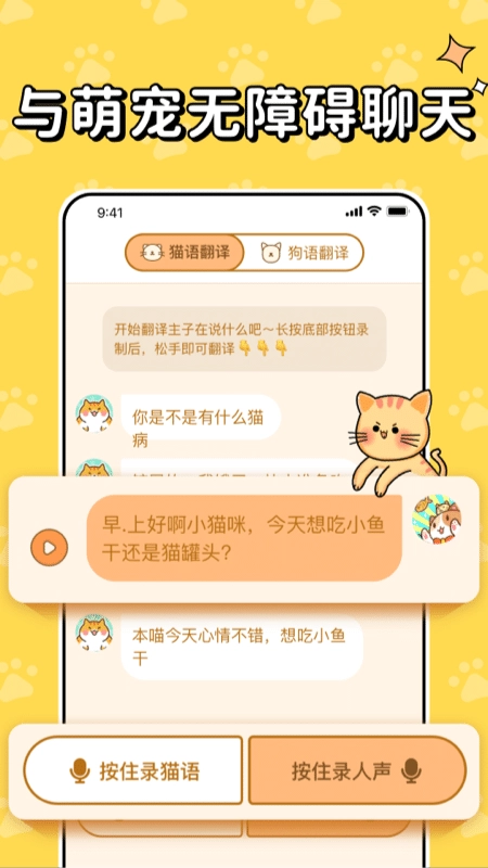 2. 实时翻译功能:把宠物发出的声音转换为文字形式,与此同时,将主人输入的文字转变为宠物可以理解的声音。