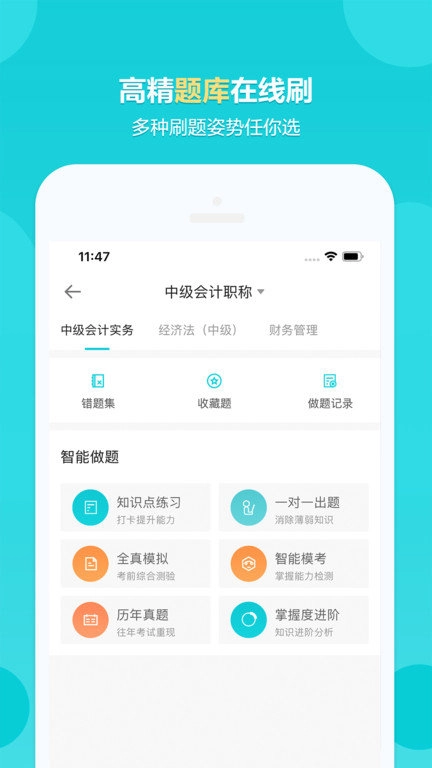 6、智能题库:提供全方位的练习与测试,其中模拟试题含金量极高,题目全面覆盖重点、难点与考点。