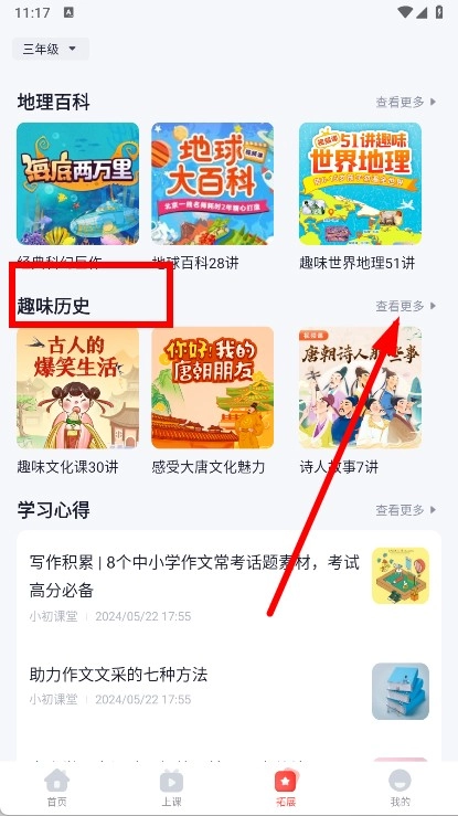1. 开启后,于首页寻觅趣味历史板块,接着点击“查看更多”按钮。