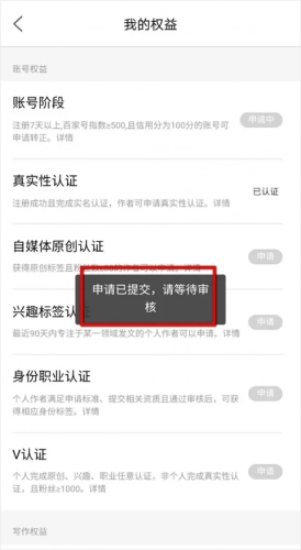 4、点击申请,成功后会提示“正在审核当中”,等待审核结束,即可完成转正。