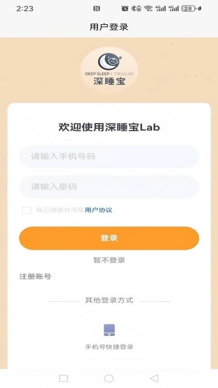 1. 处于在线状态且打开深睡宝后,能够直接通过手机号进行快捷登录并使用。