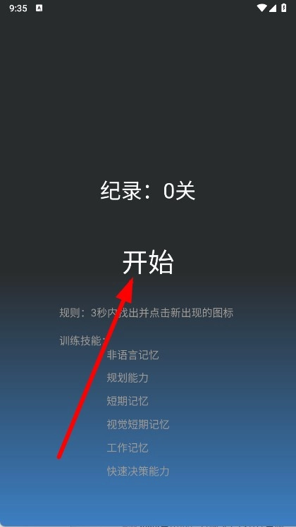 4、于训练界面,要在3秒之内找出新出现的图标并点击。