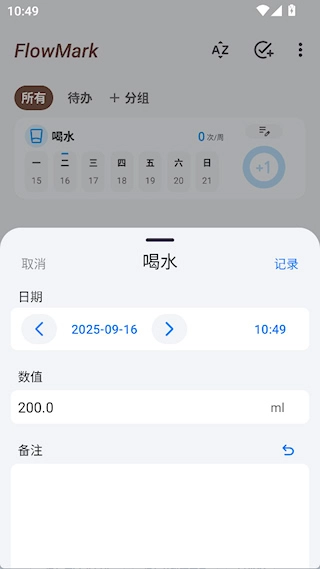 3、点击“+1”完成打卡记录