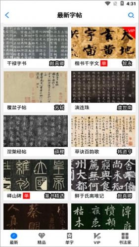 2. 首页中,于“字帖库”界面点击,将更多字帖添加至软件的最新字帖。