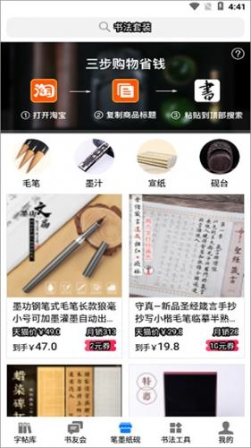 3、全新推出的文房四宝推荐板块,可为您推荐各类专业书法用品,全方位满足书法创作所需。