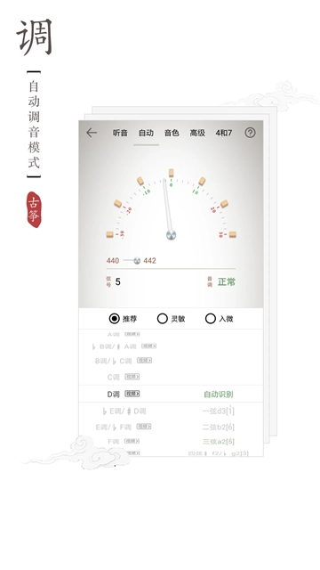 古筝调音器,是一款经专业音乐技术团队匠心打造的智能化古筝调音工具。此软件具备多样调音模式以及实用教学功能,能够快速精准地识别并校准古筝音高,无论是古筝初学者,还是专业演奏者,都适用。不管是日常练琴、为演出做准备,亦或是作为教学辅助,借助这款应用,都可高效达成调音任务。