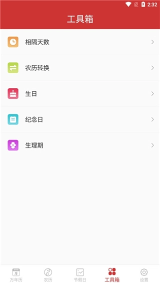 【工具】软件内还具备农历公历转换、生日提醒等工具可供使用。