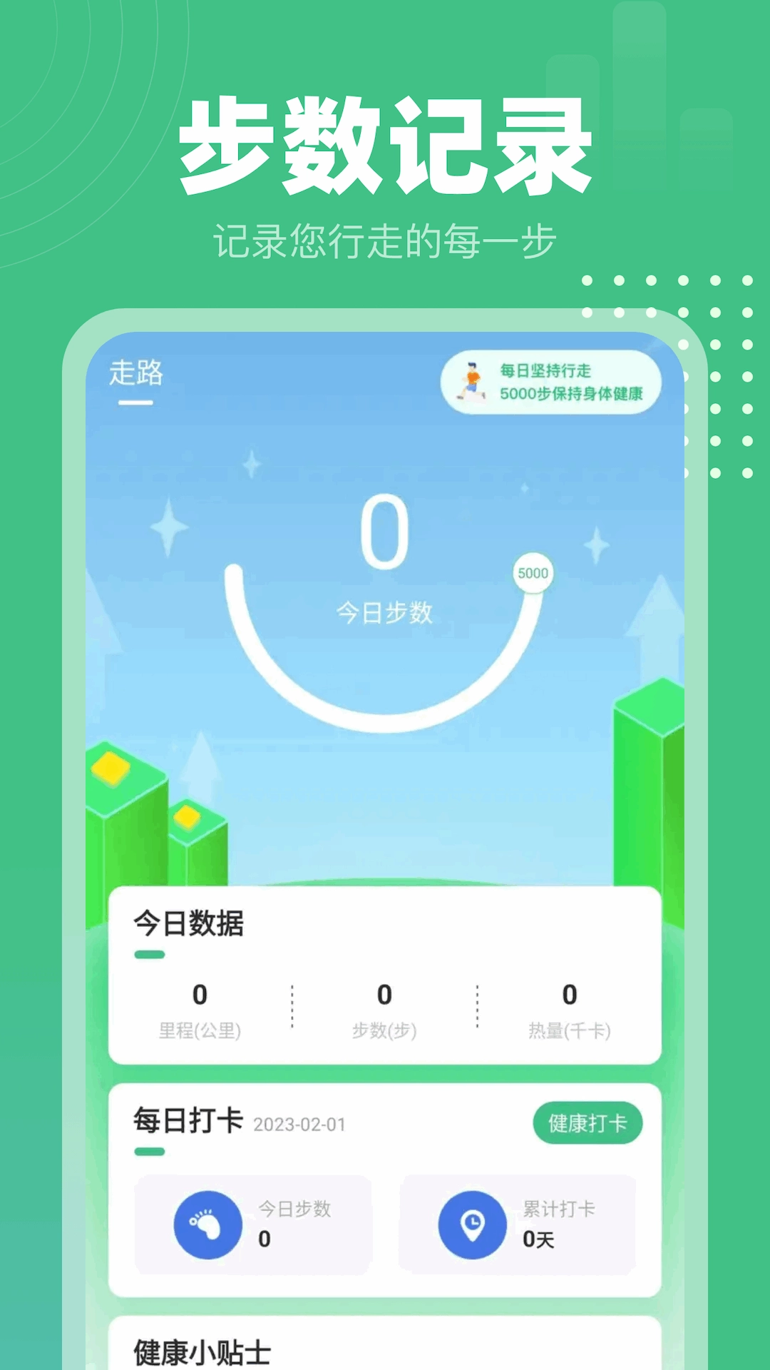 2. 提供多种计步健康模式,涵盖跑步、走路等,你可随意挑选运动模式,并能实时记录使用情况。