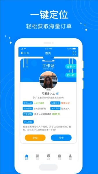 用户还能够展示查看自己的工作证,并随时进行工作打卡。