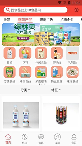 2、首页设有推荐板块,涵盖招商产品、招商广告、招商企业等内容,同时还有各类推荐的食品。
