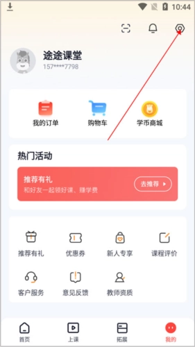 2. 进入“我的”界面,点击页面右上角的【设置图标】。