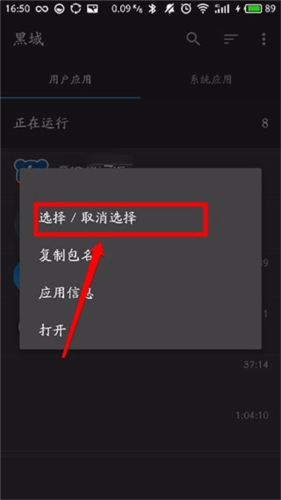 15、接下来,我们便能正常进入黑阈,点击某个你不想让其在后台运行的应用。