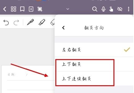2、接着依据自身需求选择【上下翻页】或者【上下连续翻页】即可~