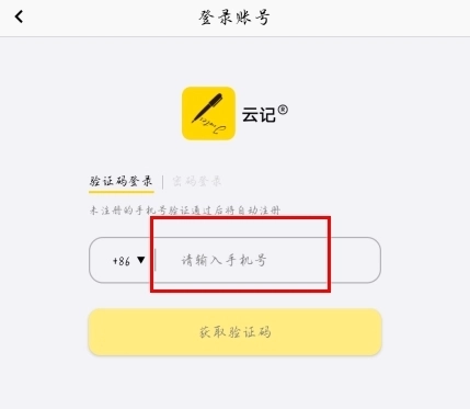 2、接着直接输入自己的手机号,获取验证码后登录就行,由于未注册的手机号只要验证通过便会自动完成注册。