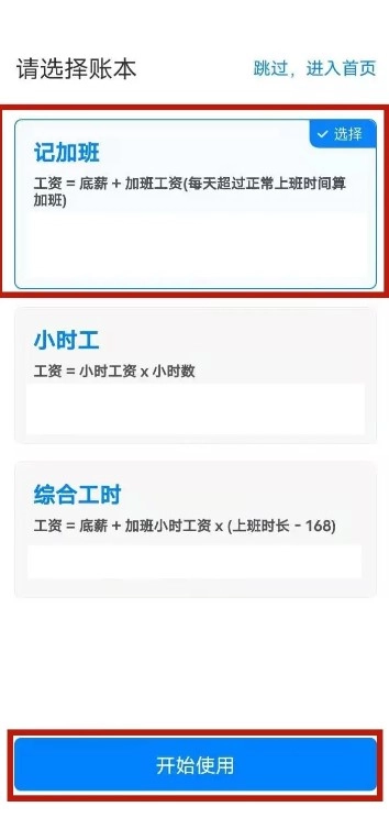 1. 打开安心记加班应用,挑选您所需的记账格式。