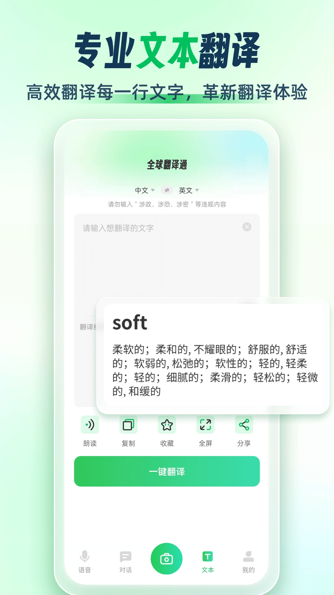 全球翻译通是一款匠心打造的翻译软件,它能够支持上百种语言文字的翻译。你只需输入想翻译的字词,软件便会迅速且精准地给出翻译。平台凭借权威的词库收录与专业的语法分析,为你呈现精确的翻译成果。此外,还能在此记录并查询自己的历史翻译内容,无论是用于学习还是工作,都相当出色。