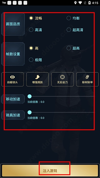 4、完成解锁后,可依据自身使用需求设置参数,接着点击“注入游戏”即可。