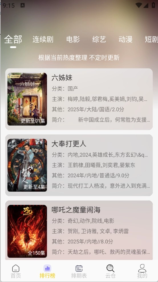 3、排行榜依据当下热度对影视进行了梳理排序。