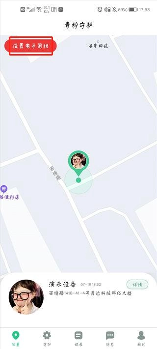2、点击如下图红色选框下方的“设置电子围栏”。