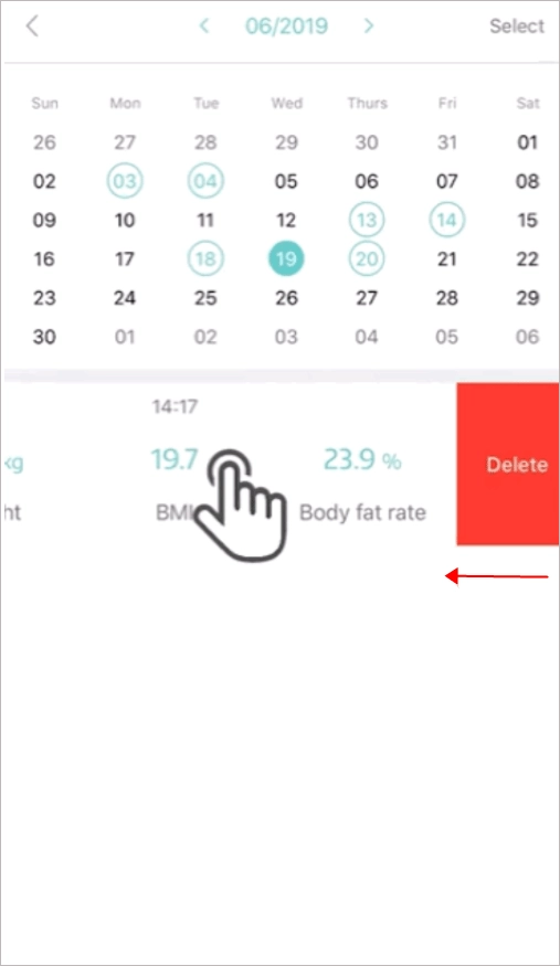 3、如需删除记录,左滑需要删除的那组记录,再点击【删除】即可。