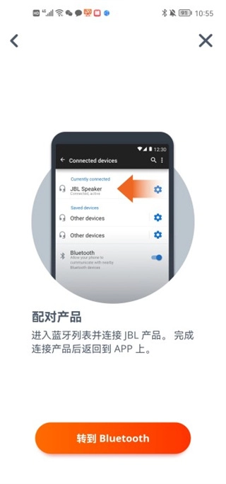 把即将使用的音箱和手机进行连接。操作方法是按下音箱的蓝牙按钮,然后在手机的蓝牙设备列表里寻找该音箱。