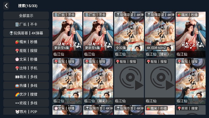 3. 当搜索到影视剧后,随意点击其中一个播放源。