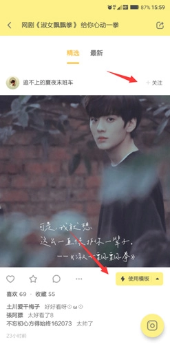接下来只需选择使用模板即可。要是你希望持续关注该模板的作者,在右上角点击关注就行。