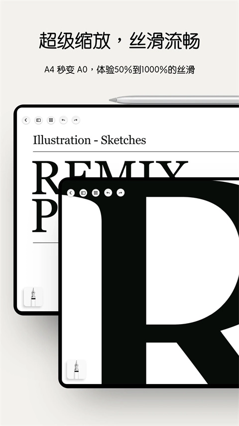 2、能将纸张面积瞬间扩增十倍,支持超过1000%自由缩放,让你能在一页纸上记录更多内容。