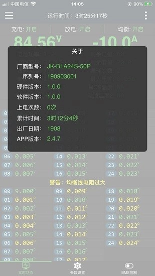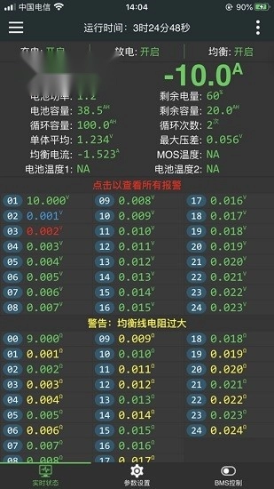 极空BMS安卓版,是一款专门针对电池管理系统打造的应用程序。借助蓝牙,用户可轻松与硬件设备完成配对,进而实时查看设备的运行状态以及各项数据。此应用功能强大,不仅能够精准监测电池的充放电状况、单体电压以及均衡线电阻,还支持对电池容量、电压等关键参数进行设置,同时允许用户修改密码。另外,极空BMS拥有充放电与均衡开关功能,全方位保障电池安全且高效地运行。不管是个人用户,还是专业技术人员,这款应用都能为其提供便捷的电池管理解决方案,欢迎前来体验!