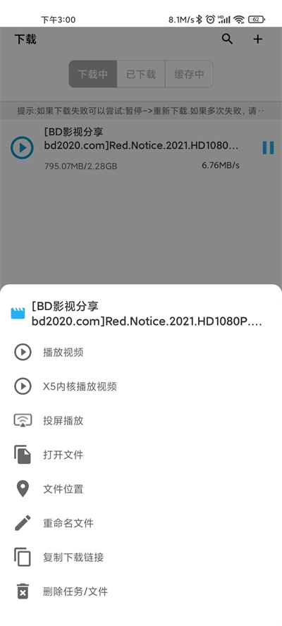 3、无需等待文件全部下载完成,在软件中即可直接播放正在下载的文件。