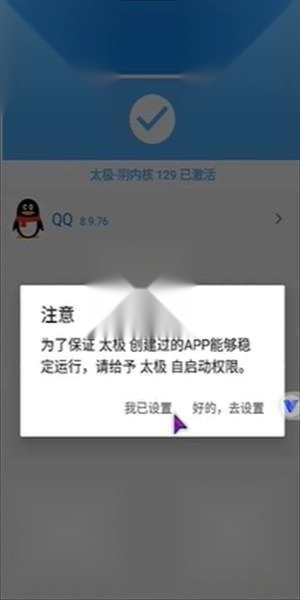 请告诉我您的机型以及系统版本,我会进行适配。此外,您可在手机上赋予太极自启动权限。要是您已经设置过了,忽略此提示就行。