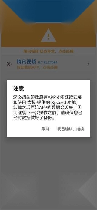 这属于太极实现原理的一部分,要使用就必须先卸载。要是存在重要数据,建议提前进行备份。以当前的实现条件,没办法在保留数据的情况下完成安装。