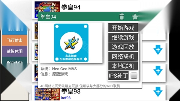 3、该软件不仅支持单机与联机模式,还集成了存档、金手指以及ips补丁等实用功能。