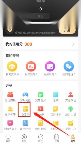 1. 进入主页,点击“我的”,打开“交易行”。
