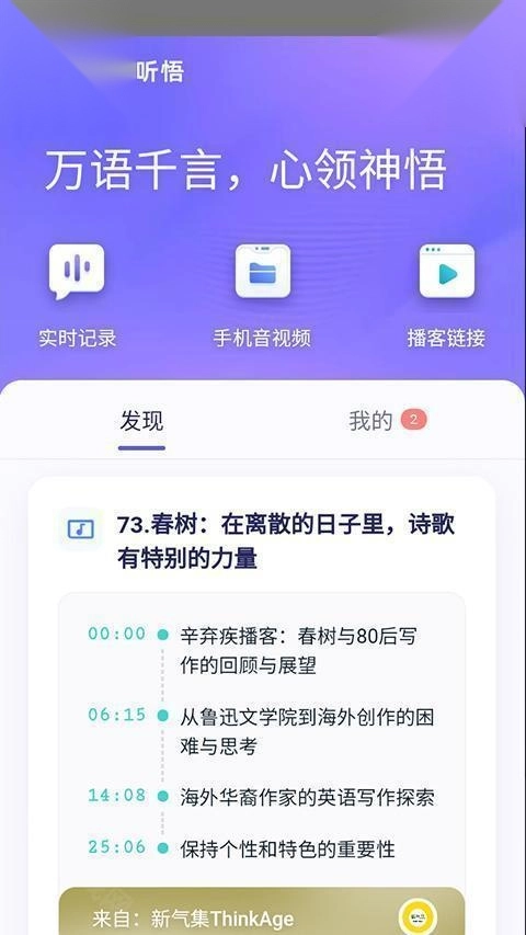 4、进入通义听悟,这里内容丰富,各类文章任用户听读。