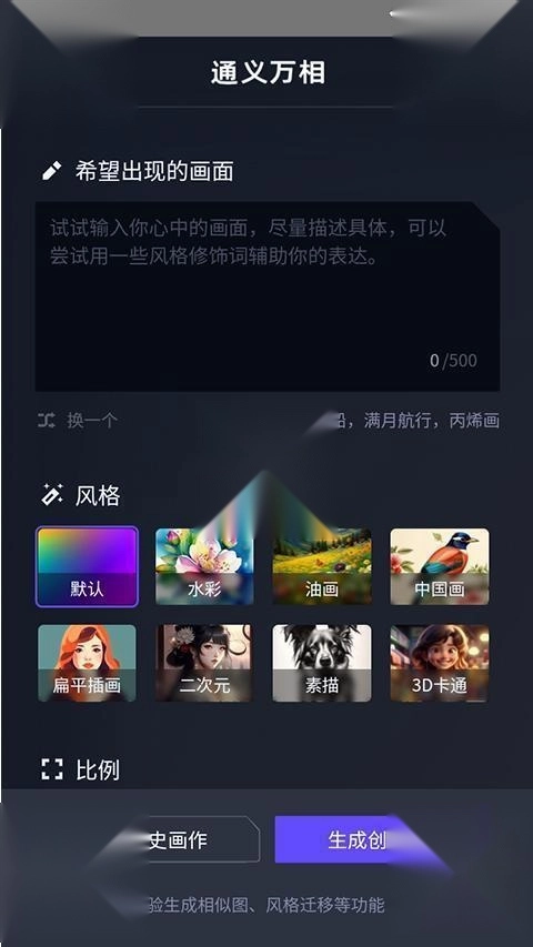 3、打开通义App,编写完内容后,即可在此生成创意画像。