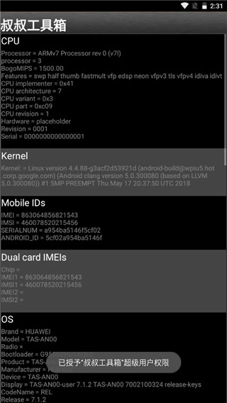 1. ROOT判定:启动工具箱后,系统会自动判定手机是否已ROOT。