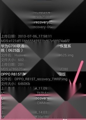 2、在联网情况下,会展示移动叔叔服务器上对应手机型号的中文recovery.img。请先自行确认手机型号,确认无误后点击,该文件就会下载到内存卡。