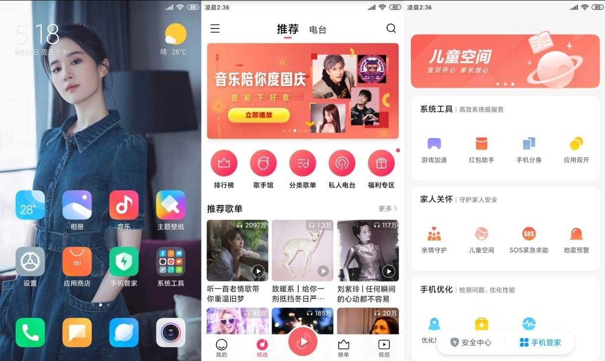 保留MIUI应用商店、浏览器、日历、视频音乐等实用功能